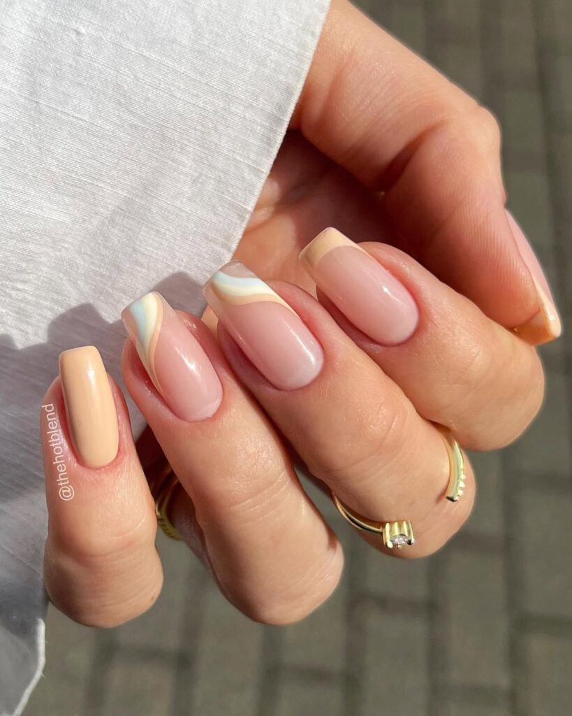 ๐“‡ผ Those with warm undertones can opt for nude polishes with yellow, orange, or peach hints, such as sandy beige or blush-toned shades. These colors enhance the natural warmth of your skin.