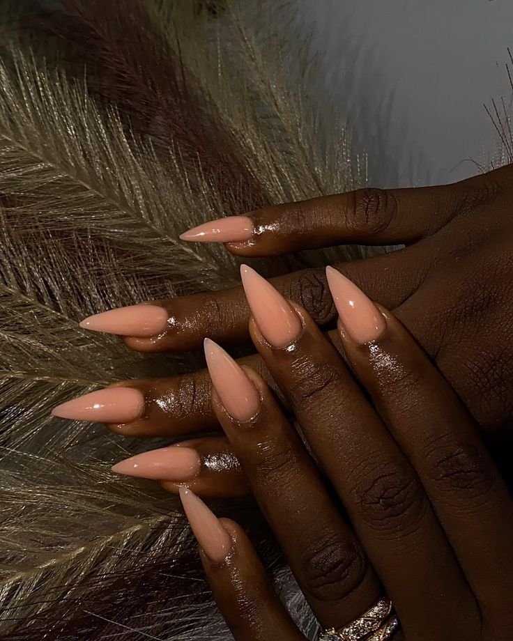 ๐“‡ผ These almond-shaped nude nails are all about understated elegance. Perfectly polished and subtly glossy, theyโ€™re your perfect choice for a minimalist look that works from brunch dates.
