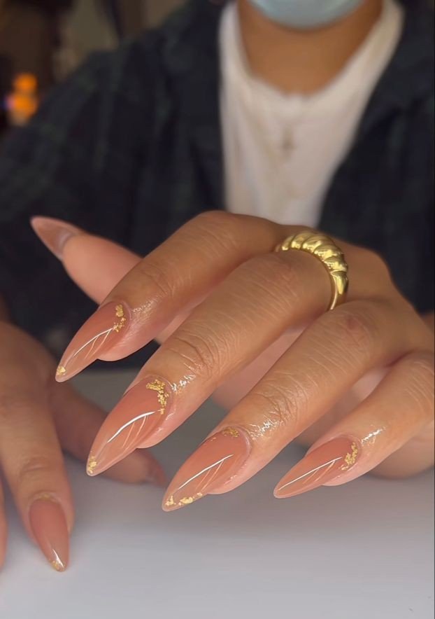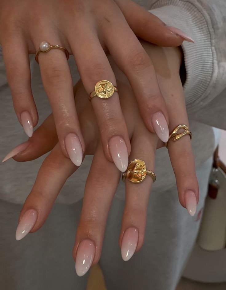๐“‡ผ Not into over-the-top nail art but still want that iconic factor? Say hi to nude ombre nails dressed up with gold rings. Soft, glossy, and low-key luxe!
