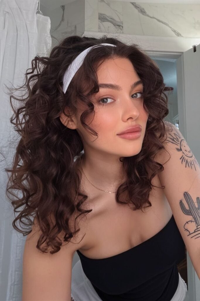 𐙚 In addition to scrunchies, headbands are another excellent accessory for curly hair. Soft options made from cotton or velvet provide comfort without pulling on the hair. Headbands help keep hair away from the face while adding a stylish touch to a variety of curly hairstyles, from loose waves to tighter coils. When choosing a headband, it is important to select styles that do not create excessive tension, as too much pressure can lead to traction-related hair loss.