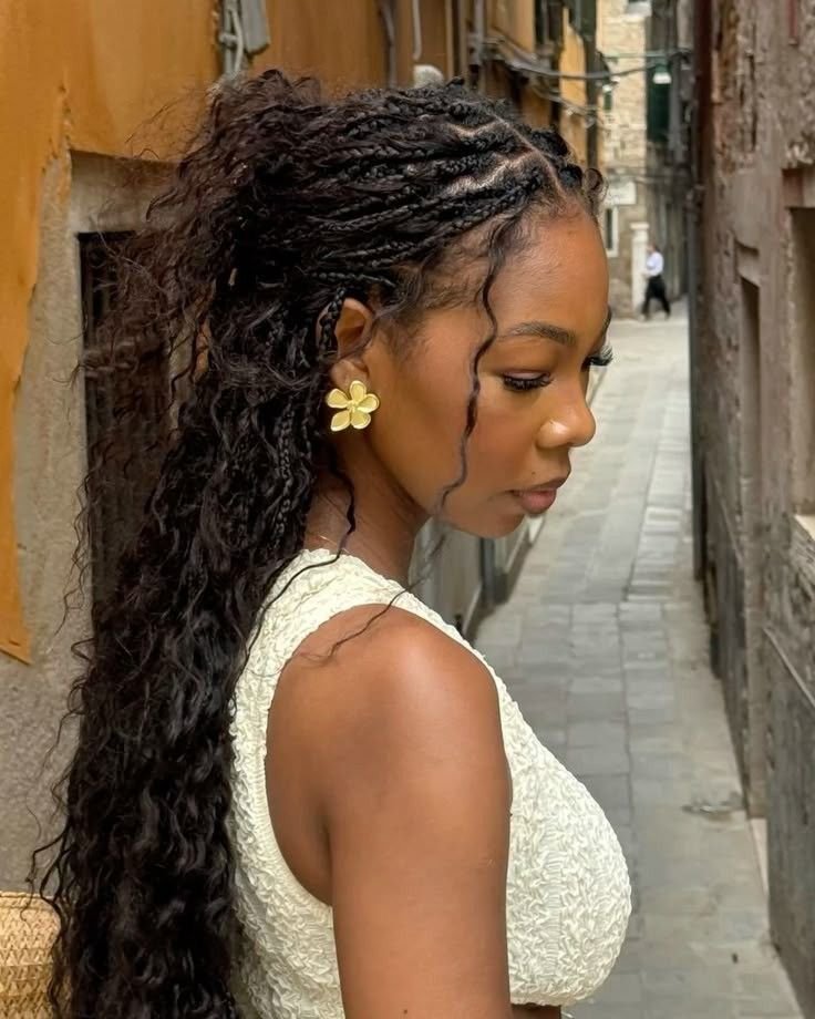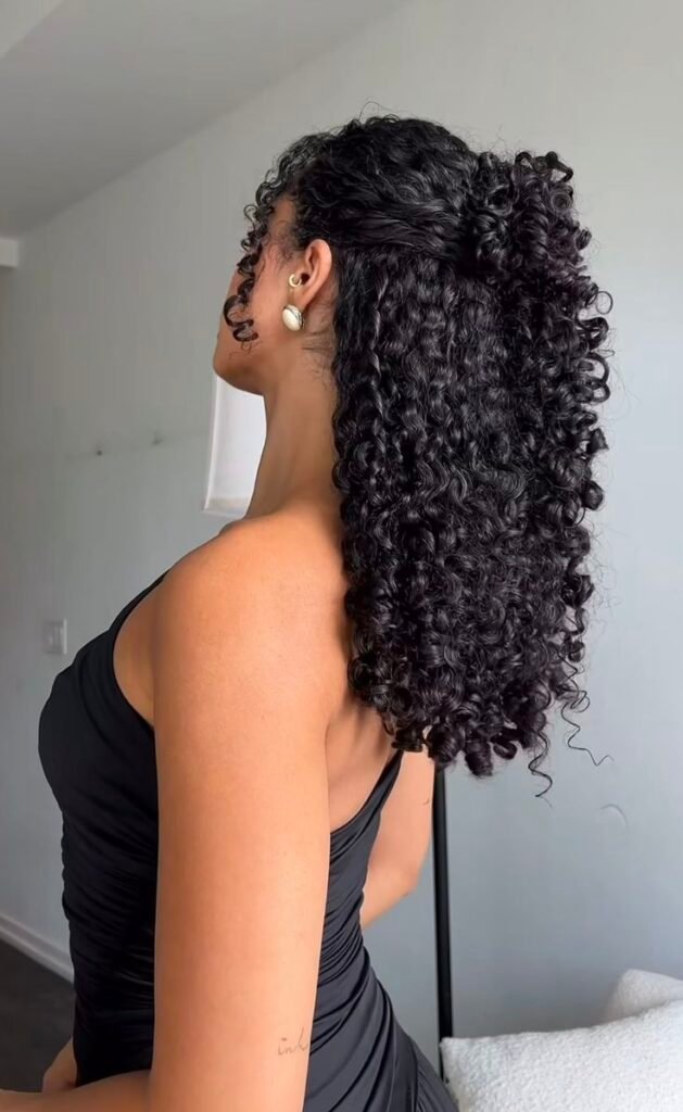 To create this hairstyle, gather the top half of your curls and secure it with a hair tie. Loosely braid this section, allowing the natural texture of your curls to shine through. This hairstyle not only keeps your face in focus but is also highly customizable, as the braid can range from a simple three-strand braid to a more intricate fishtail braid. It works beautifully for casual outings or a stylish day at the office.