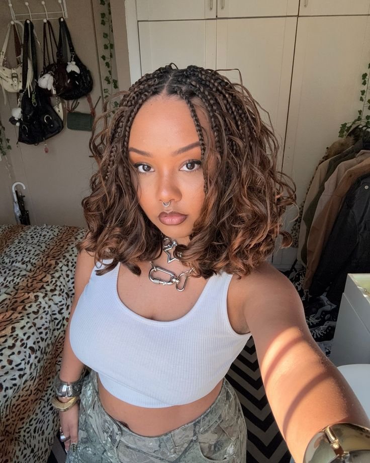 Lastly, the trendy braided curly bob has been gaining popularity for its modern and chic aesthetic. This look typically features a shoulder-length curly bob with small, cute braids scattered throughout the hair.