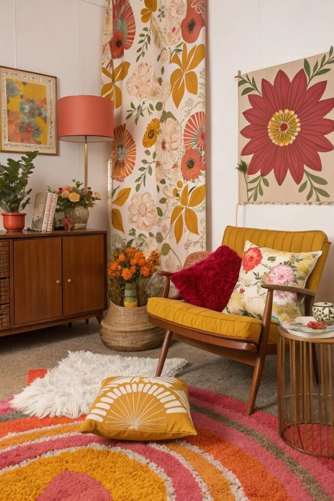 The contrast between vibrant dรฉcor and the natural beauty of plants harmoniously enhances your retro aesthetic. By carefully selecting and styling these accessories, you can create a personalized and visually appealing space that truly reflects your taste.